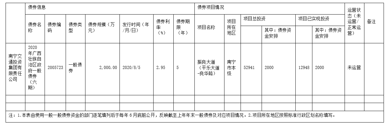 截至2020年末政府一般債券情況表