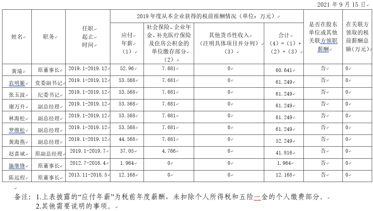 2019年度南寧交通投資集團有限責(zé)任公司公司企業(yè)負責(zé)人薪酬信息披露