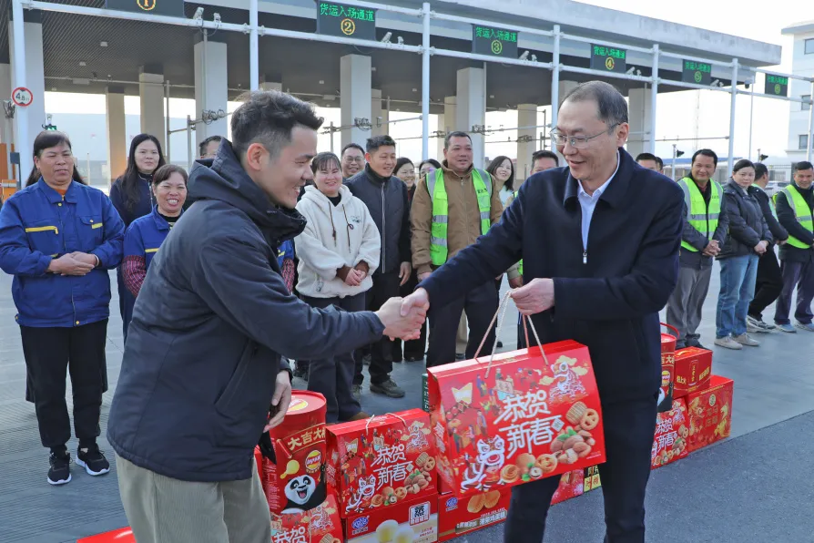 新春將至,暖意先行。連日來,南寧交投集團(tuán)領(lǐng)導(dǎo)班子成員組成多個慰問檢查組,深入南寧國際鐵路港海關(guān)監(jiān)管作業(yè)場所、南賓公路項(xiàng)目、宋村電廠、伶俐燃?xì)鈭稣?、鳳嶺客運(yùn)站、民生碼頭等地,慰問堅(jiān)守在重點(diǎn)項(xiàng)目及關(guān)鍵崗位的一線黨員、職工,同時(shí)開展歲末年初節(jié)前安全生產(chǎn)工作檢查,保障各項(xiàng)生產(chǎn)經(jīng)營工作平穩(wěn)有序運(yùn)行。