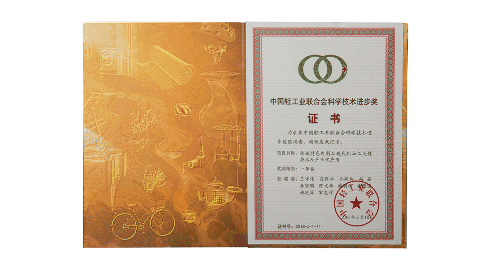 日前,中國輕工業(yè)聯(lián)合會對2018年度在科技發(fā)明及技術(shù)創(chuàng)新方面表現(xiàn)突出的企業(yè)及項(xiàng)目進(jìn)行了表彰,由金字參與的“傳統(tǒng)特色肉制品現(xiàn)代化加工關(guān)鍵技術(shù)及產(chǎn)業(yè)化應(yīng)用”項(xiàng)目經(jīng)審定及批準(zhǔn),喜獲中國輕工業(yè)聯(lián)合會科技進(jìn)步獎一等獎。