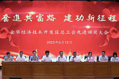 日前,6月12日下午,金華開發(fā)區(qū)總工會在李漁小學(xué)報(bào)告廳召開“奮進(jìn)共富路,建功新征程”先進(jìn)頒獎大會。經(jīng)申報(bào)、推薦、審查、評審和公示等環(huán)節(jié),我單位陳順通、姜濤二位員工榜上有名。生產(chǎn)副總監(jiān)陳順通被授予2023年度“八婺金匠”榮譽(yù)稱號,生產(chǎn)副總監(jiān)姜濤被授予2023年“金開工匠” 榮譽(yù)稱號。
